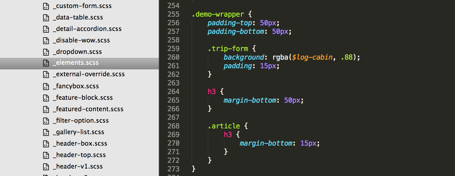 Sass files along with grunt settings are included with this theme to make CSS customization super easy and interactive.
